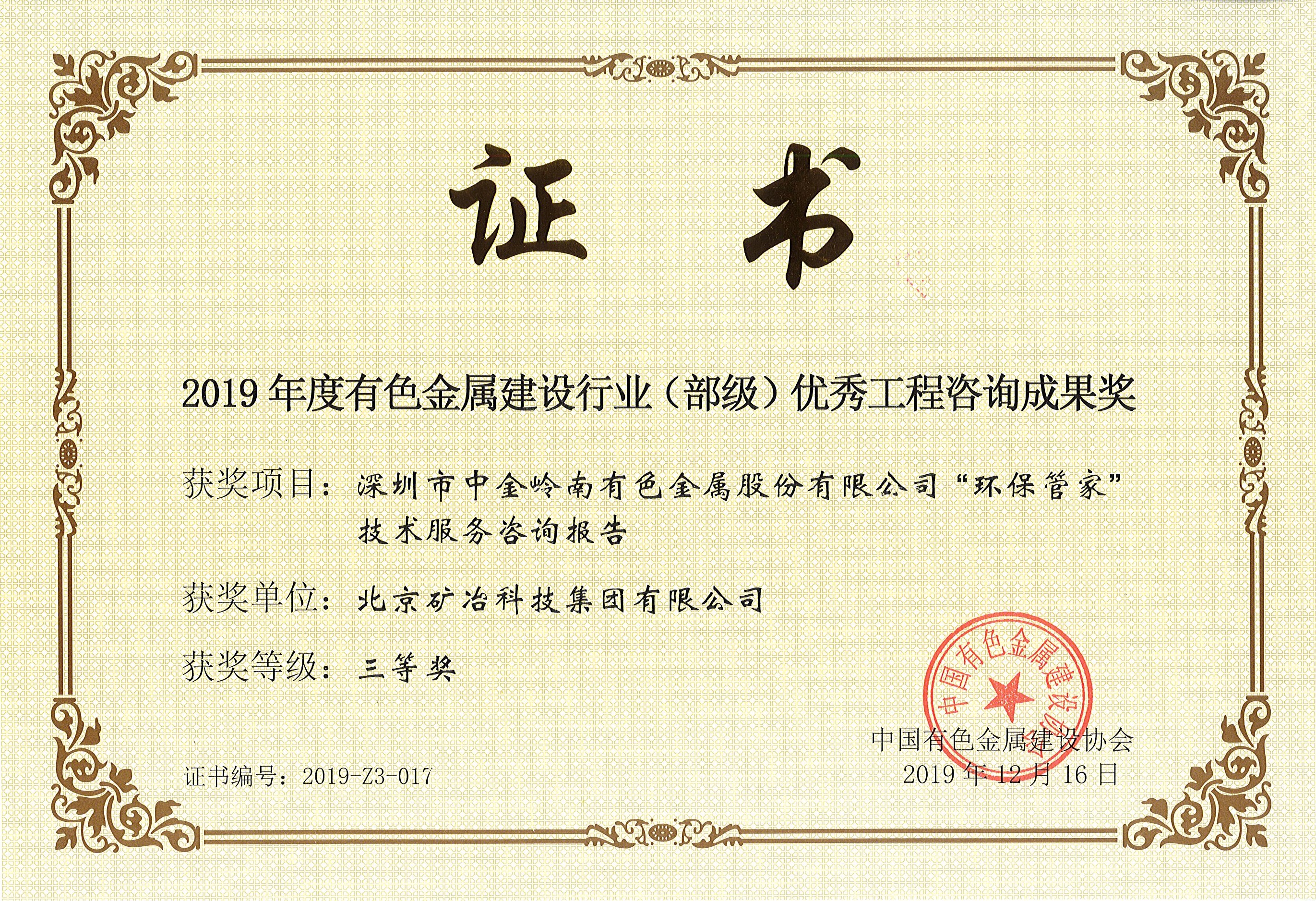 深圳市中金岭南有色金属股份有限公司“环保管家”技术服务咨询报告 三等