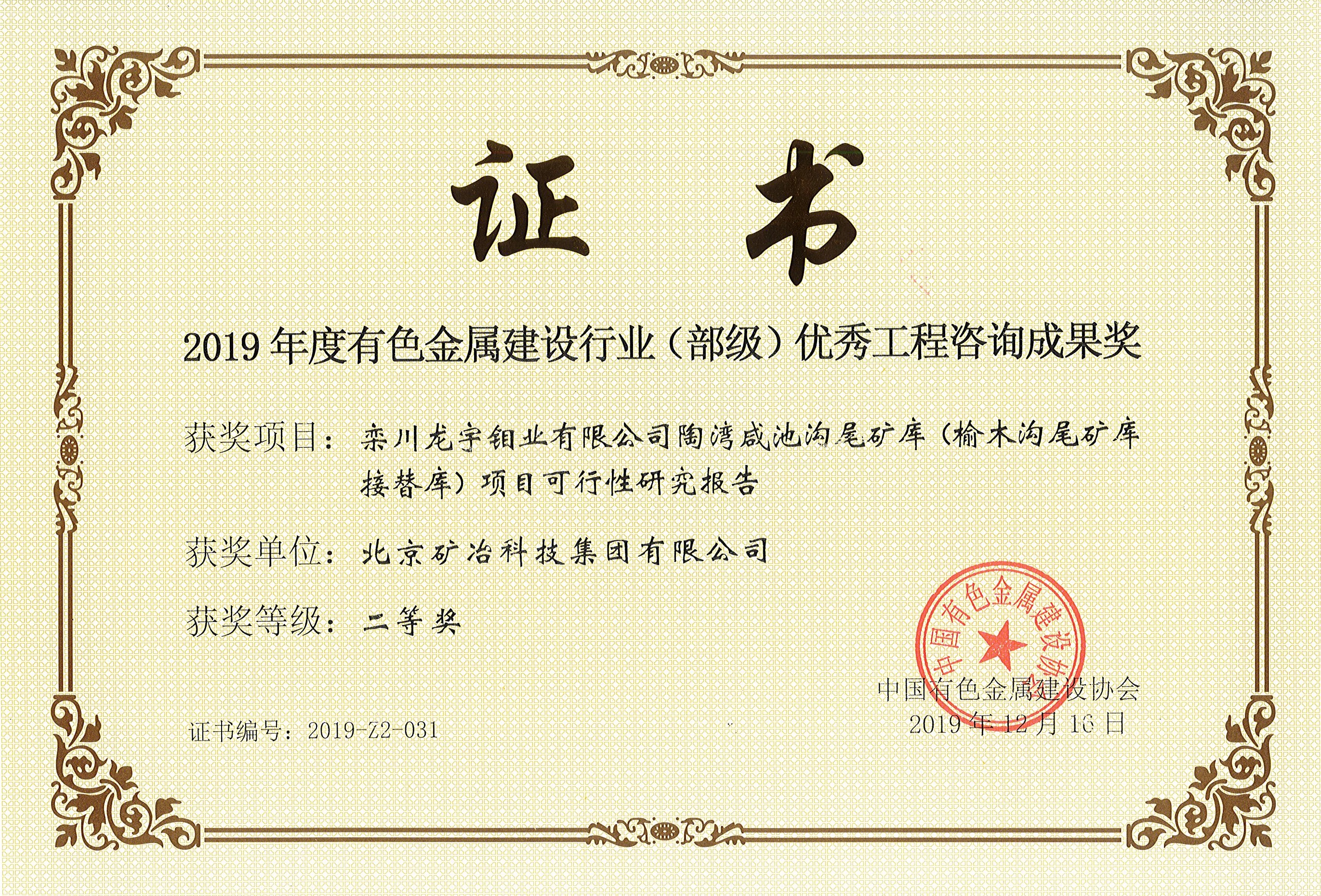 栾川龙宇钼业有限公司陶湾咸池沟尾矿库(榆木沟尾矿库接替库)项目可行性研...