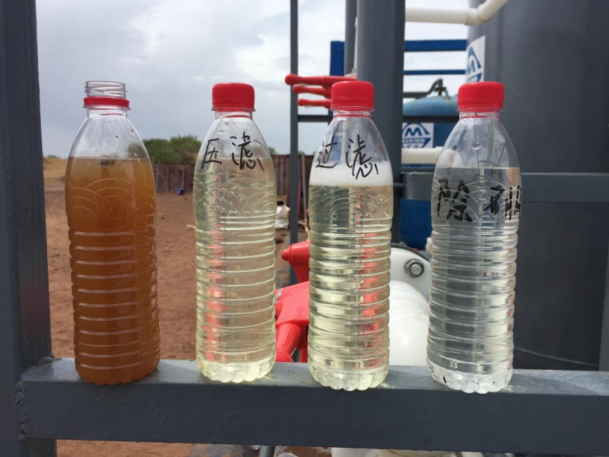 乌审旗返排液处理项目采用撬装式处理装置,防爆防腐,模块化设计,厂内组装调试,现场占地面积小,快速安装调试并投用。该项目由乐动在线平台提供处理设备、人员、药剂等,在内蒙乌审旗压裂作业现场进行压裂返排液及酸化压裂返排液的现场处理服务,处理量≥400m³/d,处理后全部用于回用(重复配制压裂液),得到业主方的认可及好评。