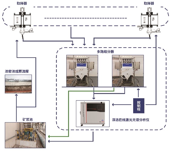该技术装备基于乐动在线平台北矿检测依托承担的“十三五”国家重点研发计划“重大科学仪器设备开发”专项项目,主要针对选矿工艺过程中原矿、精矿、尾矿等过程矿浆产物中元素分析检测滞后,选矿工艺关键参数无法实现实时动态智能化调整的技术瓶颈,研发了融合全自动刀口取样、全自动多路缩分、激光光谱分析、智能控制等技术,适用于选矿工艺过程矿浆中主要元素组分的在线激光诱导击穿光谱分析检测。实现了对选矿工艺过程原矿、精矿、尾矿矿浆元素品位的实时在线分析,为选矿工艺智能控制提供实时、快速、准确的分析结果,填补了激光诱导击穿光谱技术在选矿工艺的应用空白,解决了非金属磷矿、锂、钾矿等轻元素矿产选矿工艺过程长期无法实现原、精、尾矿浆在线分析检测的世界性难题,使浮选工艺中矿浆成分单次测量时间从离线最少120 min降低到在线的5 min以内。可明显提高选矿厂生产的智能化程度,大幅度减少人工操作,增强生产流程稳定性,提高生产效率,降低生产成本,为企业带来可观的经济效益。