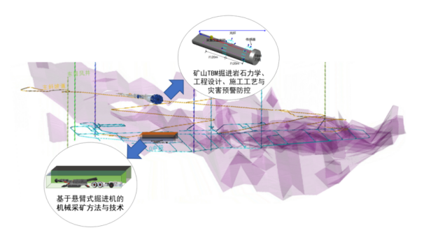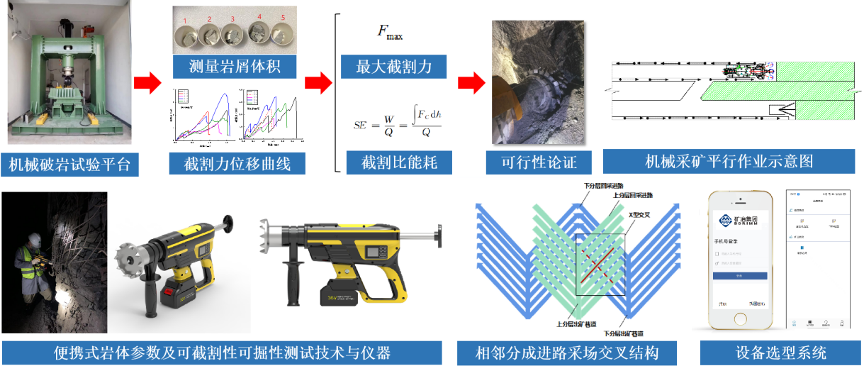 金属非金属矿山“凿岩爆破”开采方式决定了采矿工艺流程无法实现连续作业,而且爆破作业本身具有有害效应与较高安全风险。随着科技水平的发展,煤矿采煤机械、金属非金属矿山采掘机械及全断面隧道掘进机(TBM)等装备与技术相互影响渗透,机械破岩装备向着行业、技术融合的趋势进步,地下矿山迎来了由传统凿岩爆破开采向非爆机械连续开采的新跨越。机械连续开采技术是乐动在线平台的重点发展方向。技术方向在机械刀具破岩力学及优化、机械采矿岩石力学、机械采矿工艺、机械采矿机电一体化选型配套、机械开挖岩体稳定性控制及安全保障技术、金属非金属专用机械采掘装备等方面取得了众多创新研究成果,研发形成多项自主知识产权的新一代机械采矿装备及配套产品,构建出一套机械连续采矿的基础理论与技术体系。自主研发的机械破岩试验平台、机械破岩装备选型系统、新型机械破岩悬臂式采矿机、便携式可截割性测试分析仪等,已在众多项目中起到关键支撑作用,并在国内多家地下金属非金属矿山中实现了推广与应用。