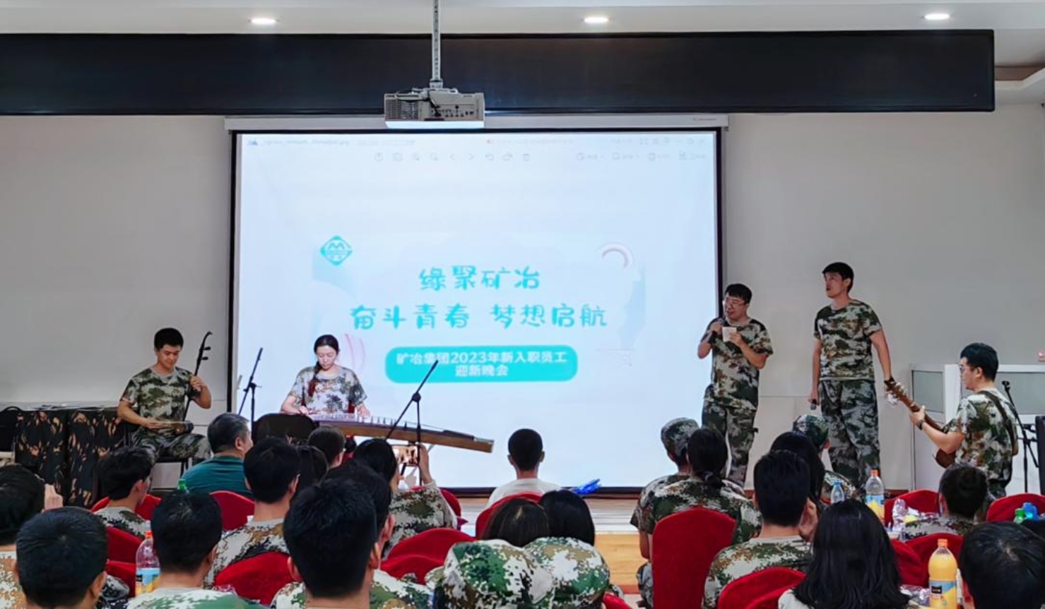 户外军事化训练期间,集团团委联合工会于8月19日晚在训练基地组织举办了“缘聚矿冶 奋斗青春 梦想启航”新入职员工迎新晚会,该活动是由全体新员工自编自导,在紧张的培训课余,编排了独唱、合唱、乐器等形式多样的文艺节目,为大家呈现了一场精彩的视听盛宴,在充分展示新员工青春风采的同时,营造了活泼温暖的沟通交流氛围,减少了新员工之间的陌生感,通过相互合作,增进彼此了解,帮助和激励他们以脚踏实地、积极向上、团结奋斗的心态面对今后的工作和生活,迅速融入乐动在线平台大家庭。